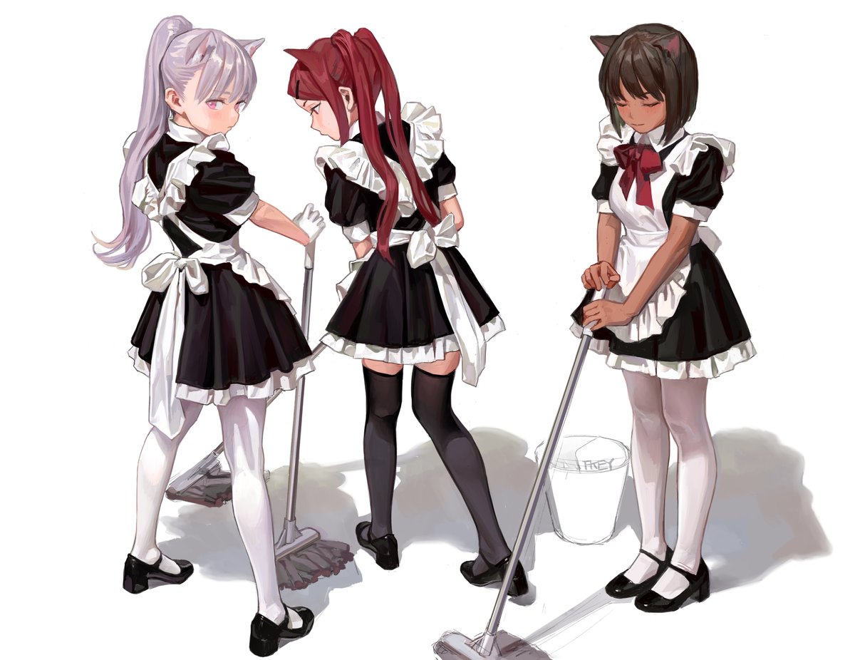 You hear a door slam and suddenly you stand up and open your eyes, you see yourself still in the feminized body of the thief, but older, wearing maid clothes, you see some girls with black hair and silver hair with cat ears, just like you , they wear maid clothes.